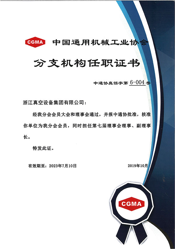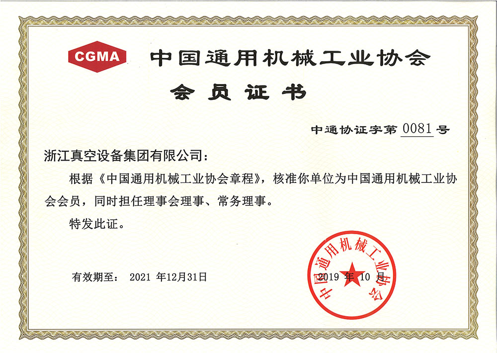 中國(guó)通用機(jī)械工業(yè)協(xié)會(huì)會(huì)員證書(shū)